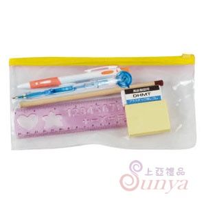 • HC31側壓自動鉛筆+流暢筆+鉛筆+尺+橡皮擦+自黏貼+大PVC拉鏈袋